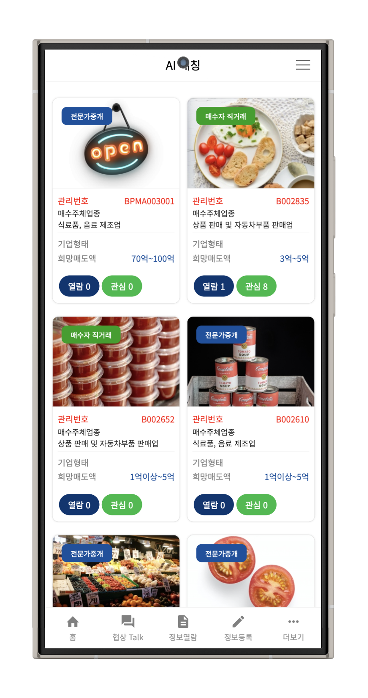 은 매칭 할 수 있는 상대 정보를 내부 에서 가지고 있지 않아, 밖으로 정보(티저)를 돌리면서 매칭하는 형태로 구두 또는 만나서 묻고 답하는 중에 핵심 정보, 노출 및 소문 전파 가능성 존재매도